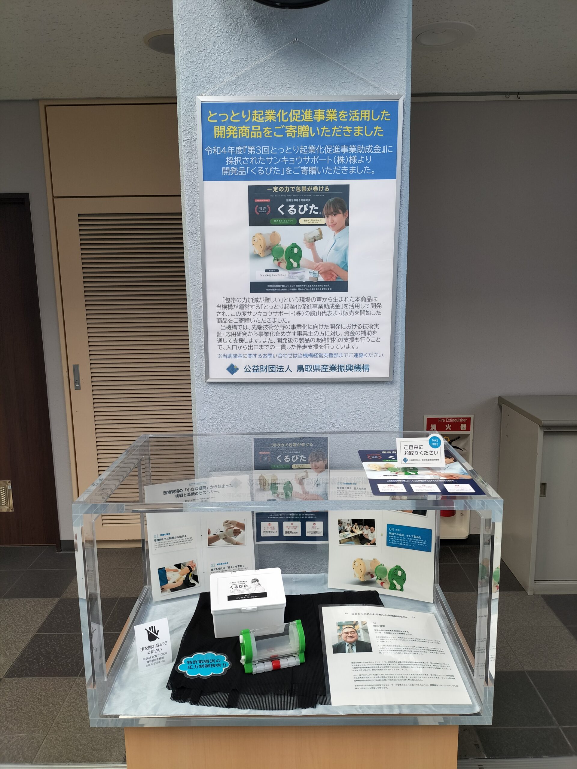 この度、サンキョウサポート(株) 鏡山代表より開発品「くるぴた※」をご寄贈いただき、アトリウムへの展示を開始しました。