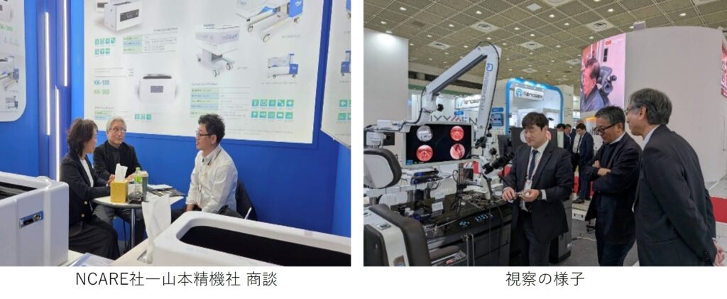 本年の「KIMES」は、世界41カ国から過去最多となる1,490社が出展し、展示製品数は約39,000点にのぼるなど過去最大規模での開催となりました。会場内では、AIを活用した診断支援システムやデジタルヘルスケア、さらに世界的に関心の高い美容・ウェルネス分野のブースに数多くの海外バイヤーが詰めかけ、終始熱気に包まれていました。当センターと交流協定を締結している原州医療機器産業振興院(WMIT)の拠点である江原道からも、スタートアップ企業を中心に数多くの企業が出展し、視察の際はWMIT担当者と同行して最新の技術動向や市場ニーズの把握に努めるとともに、両地域間における今後の協力体制について改めて確認を行いました。
