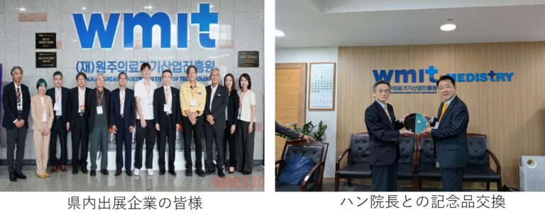2025年9月18~19日に韓国江原特別自治道原州市で開催された江原医療機器展示会(GMES2025)に、県内企業5社が出展しました。この展示会は(財)原州医療機器産業振興院(WMIT)が主催する医療機器、デジタルヘルスケア、バイオ、化粧品分野関連の国際展示会で、本年は計139社・159ブースが出展し過去最多の出展規模となりました。