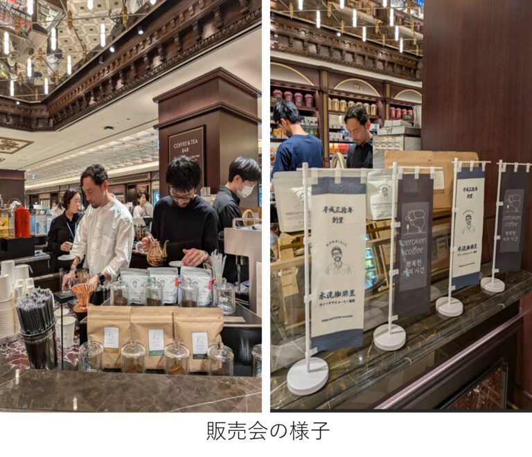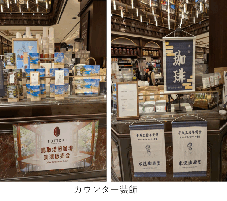 会場では日本語表記のパネルやタペストリーを設置し、日本らしさを演出。バーカウンターでは鳥取県から訪韓したバリスタ2名が来場者の好みに合わせて抽出を行い、約7割がハンドドリップを選ぶなど大きな反響を呼びました。販売数は1日平均70杯、週末には100杯を超え、最終日には一部商品が売り切れる盛況となりました。