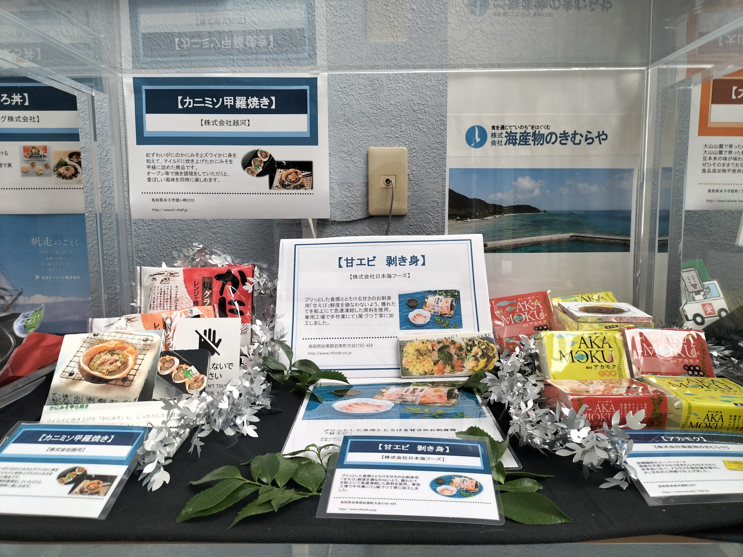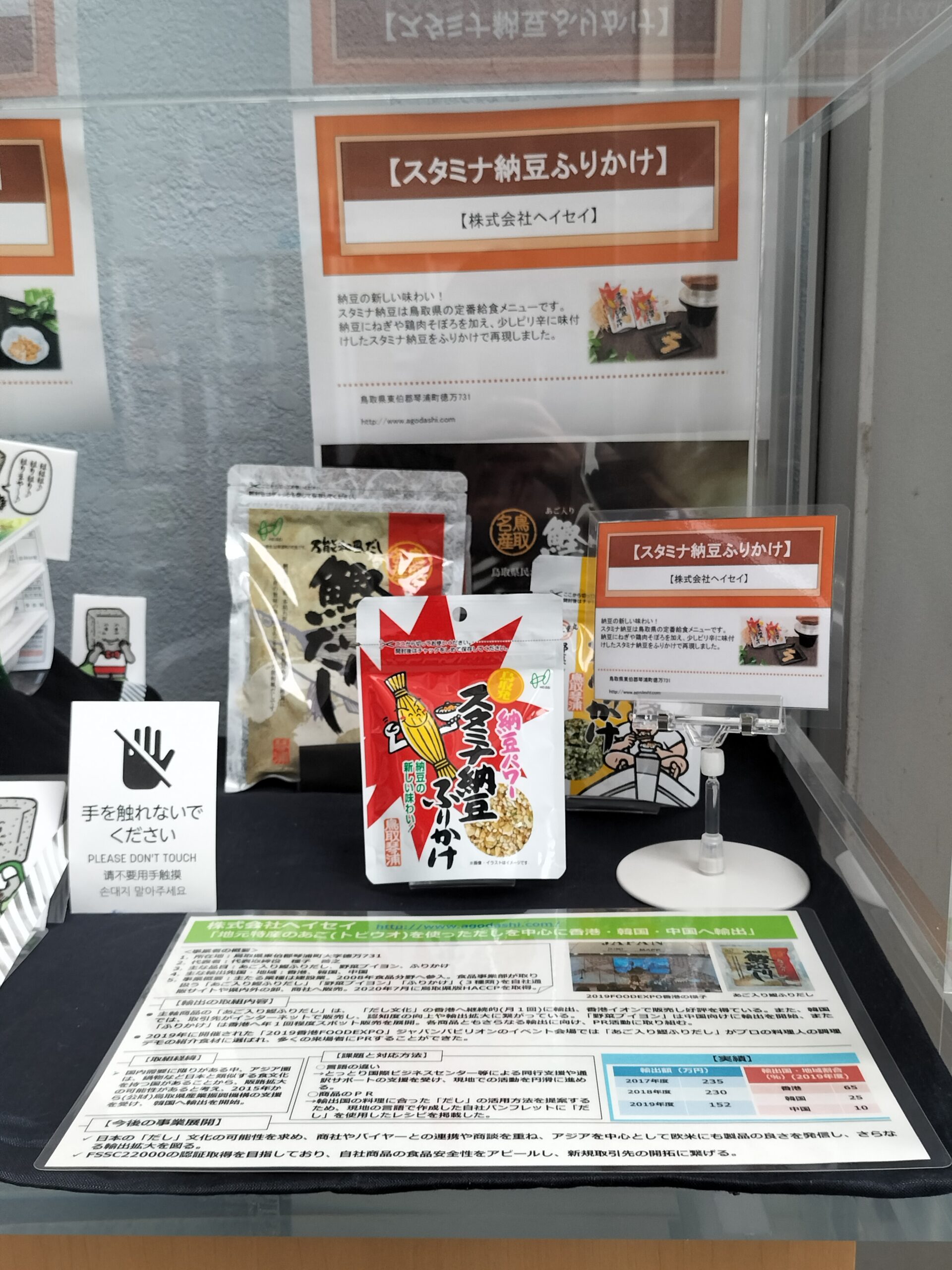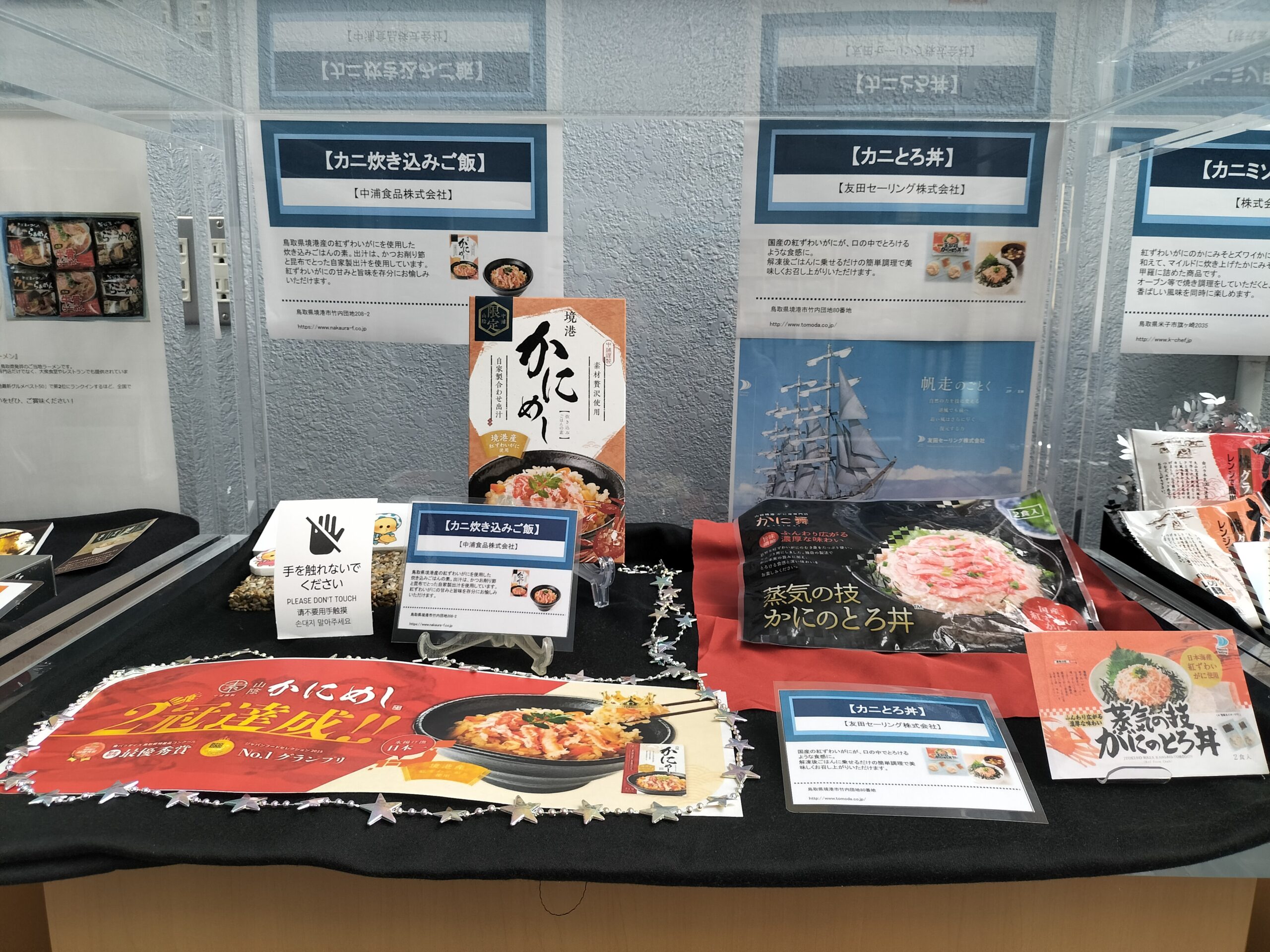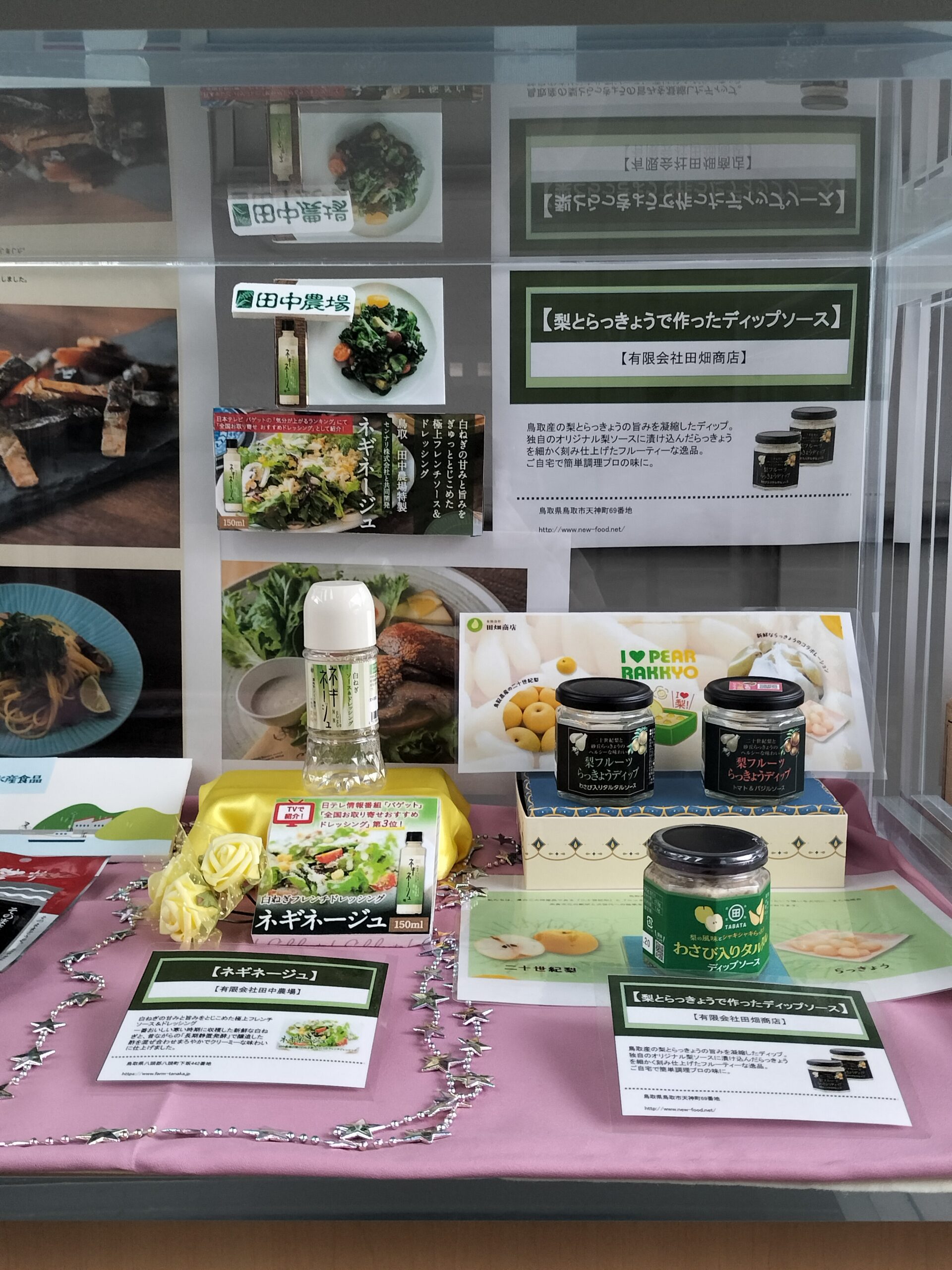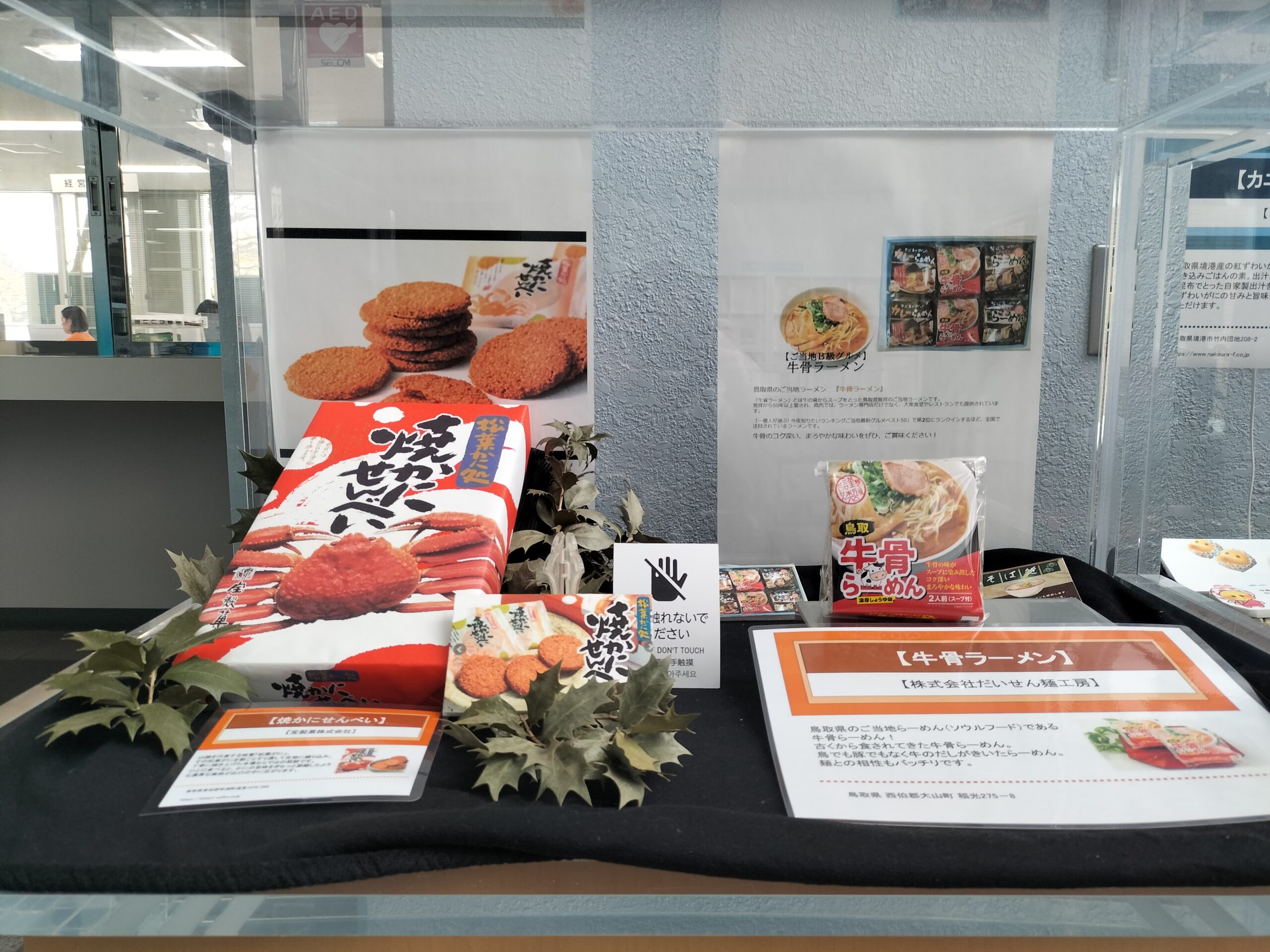 当機構本部アトリウム(鳥取市若葉台南7丁目5番1号)では、ベトナムバイヤー招へい事業およびベトナム現地販売会事業において紹介した県内企業商品を展示しています。お立ち寄りの際はぜひご覧ください。