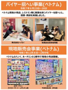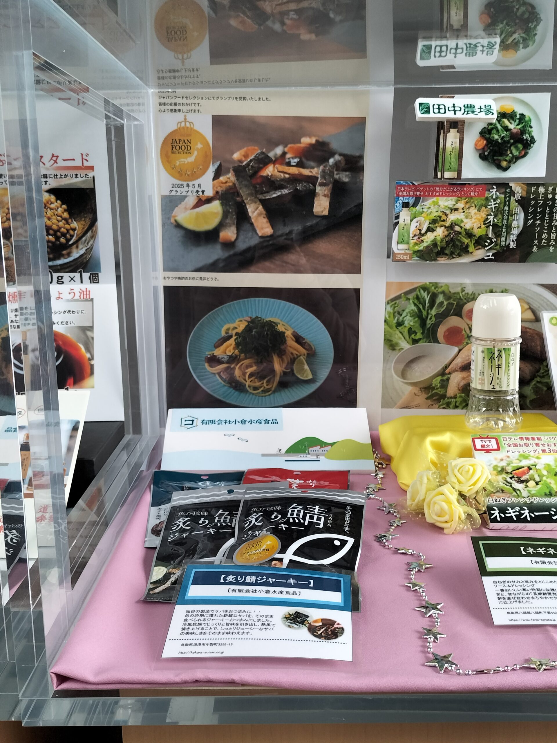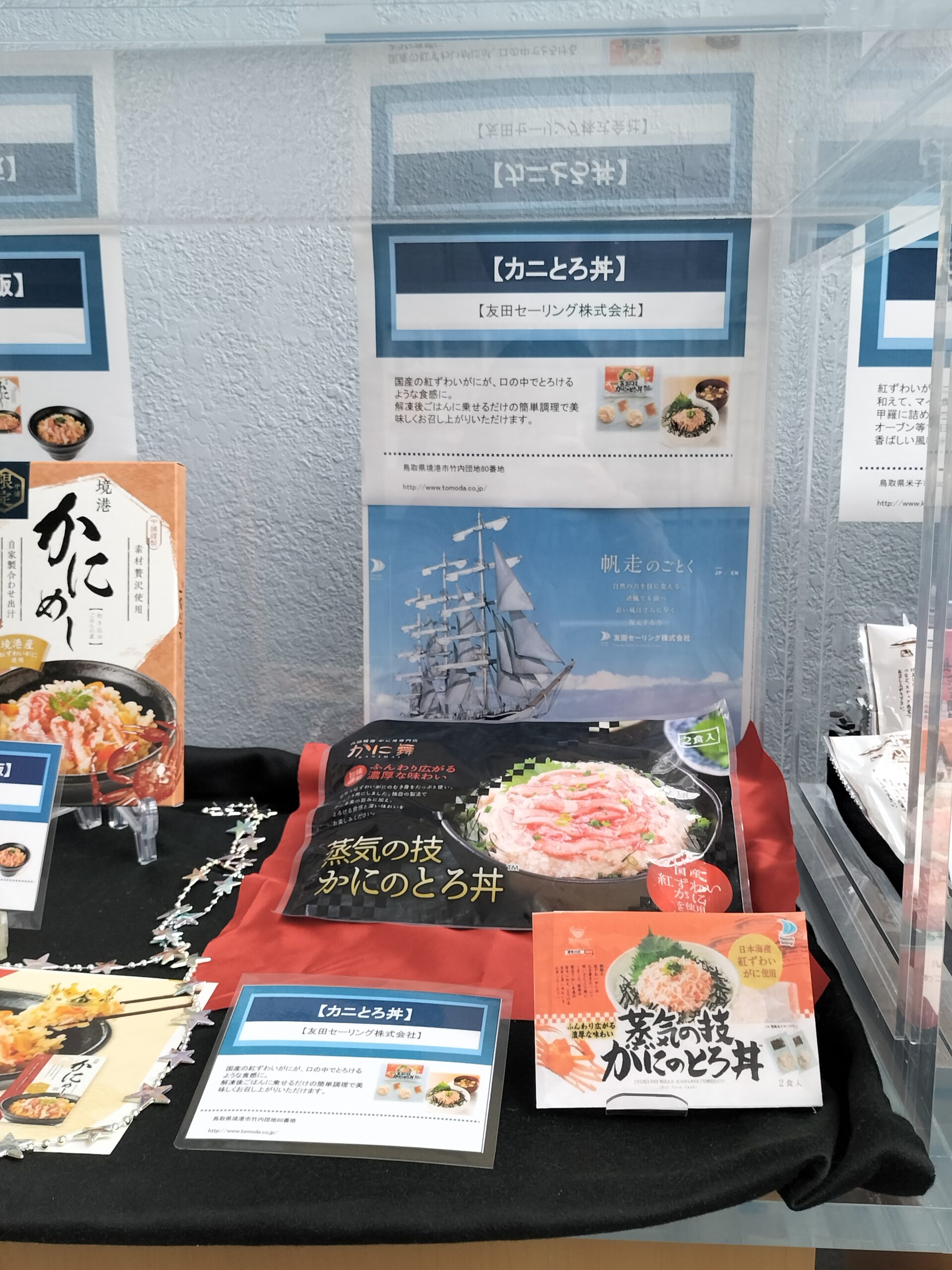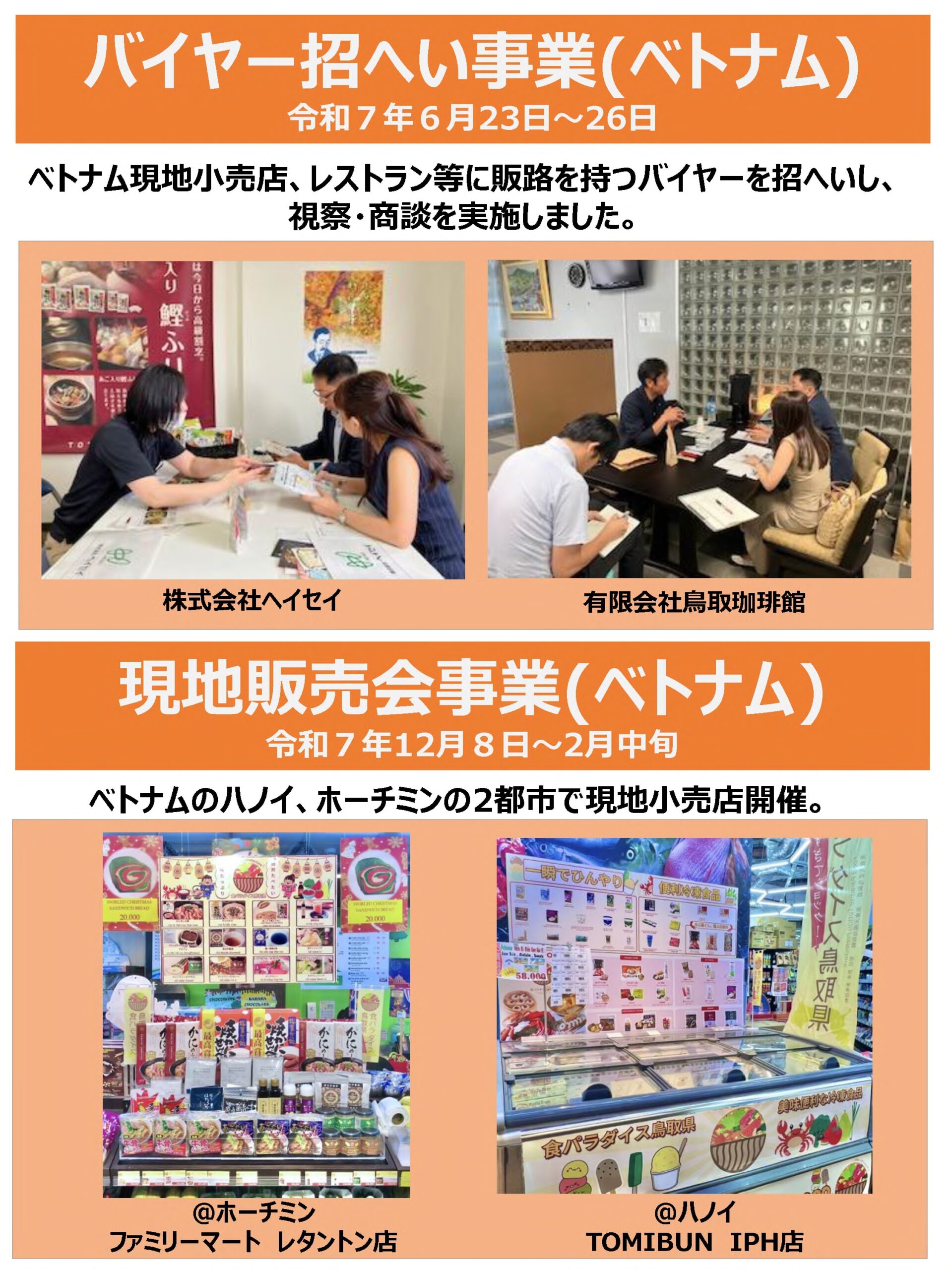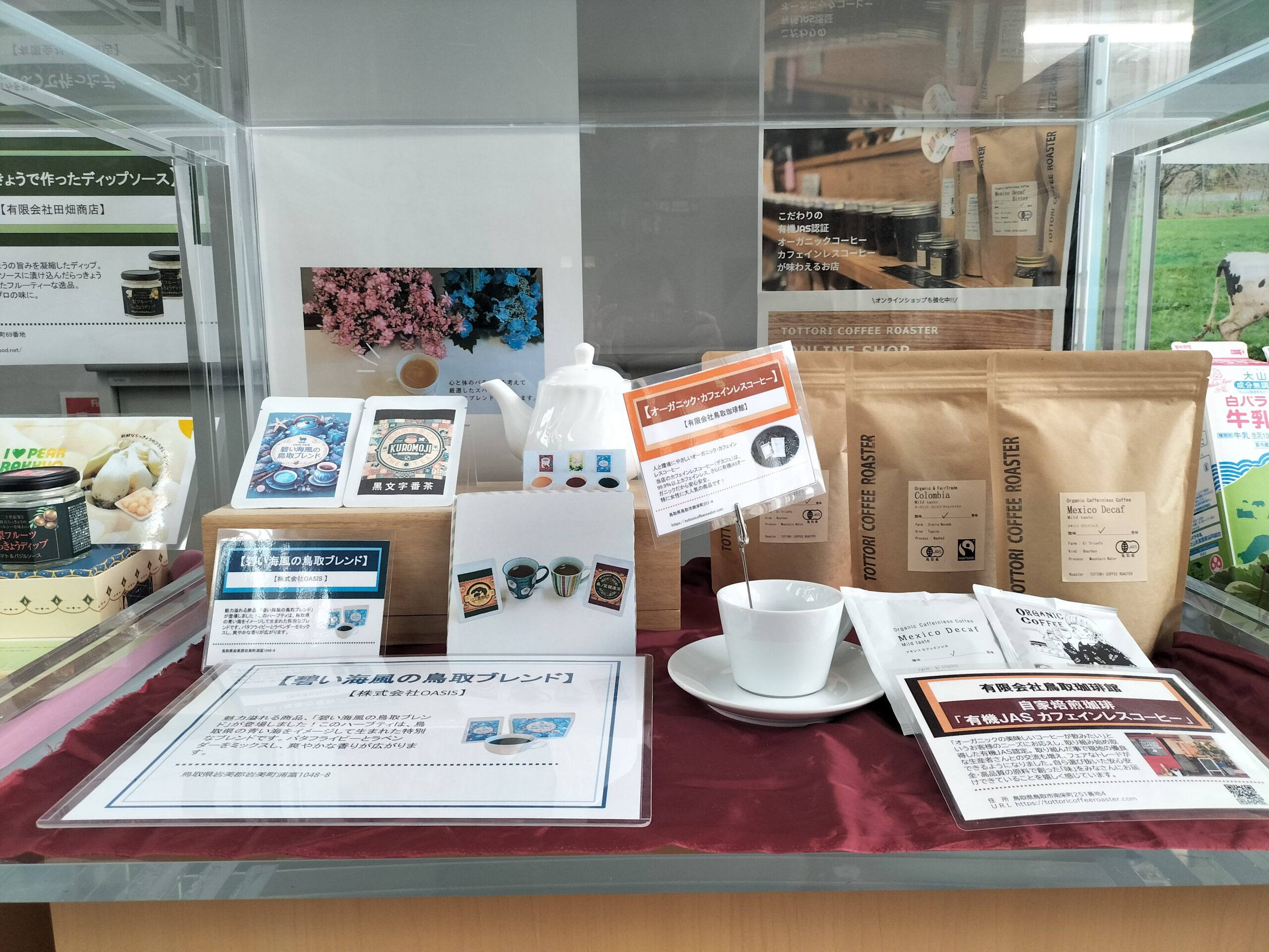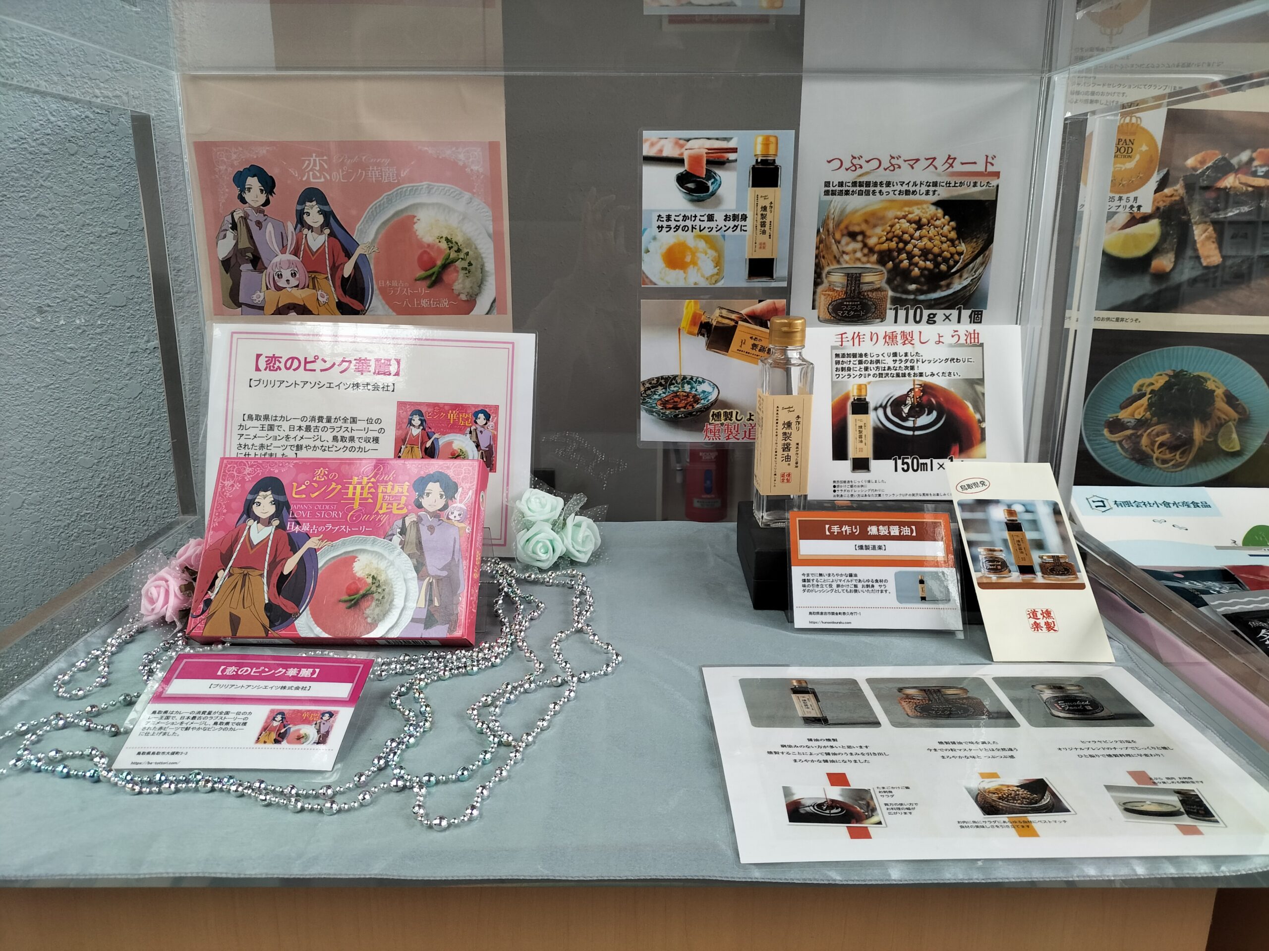 当機構本部アトリウム(鳥取市若葉台南7丁目5番1号)では、ベトナムバイヤー招へい事業およびベトナム現地販売会事業において紹介した県内企業商品を展示しています。お立ち寄りの際はぜひご覧ください。