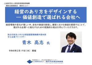 | 経営のあり方をデザインする ― 価値創造で選ばれる会社へ | 独立行政法人中小企業基盤整備機構 中国本部 中小企業アドバイザー 青木 高志 氏 |