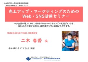 終了 | 売上アップ・マーケティングのためのWeb・SNS活用セミナー | 株式会社COME TREES 二木 春香 氏 |
